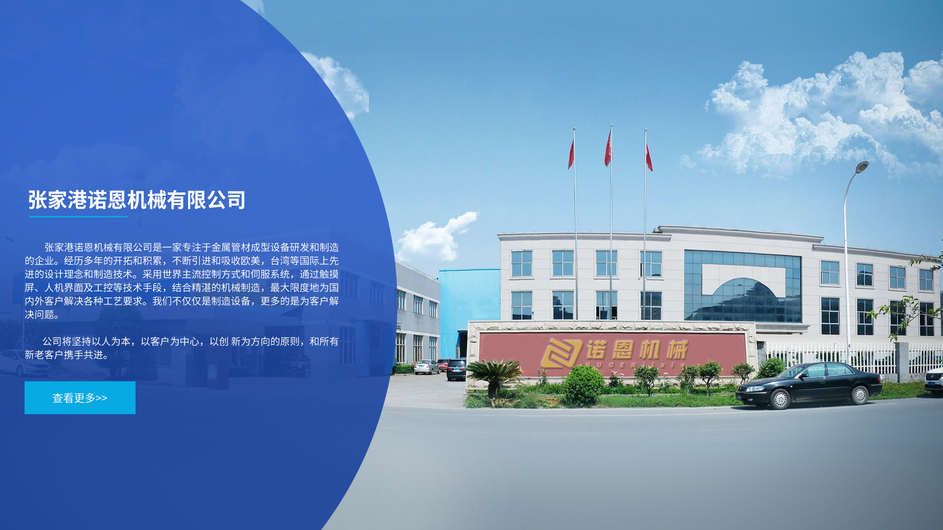 张家港诺恩机械有限公司是一家专注于金属管材成型设备研发和制造的企业。经历多年的开拓和积累,不断引进和吸收欧美,台湾等国际上先进的设计理念和制造技术。采用世界主流控制方式和伺服系统,通过触摸屏、人机界面及工控等技术手段,结合精湛的机械制造,最大限度地为国内外客户解决各种工艺要求。我们不仅仅是制造设备,更多的是为客户解决问题。